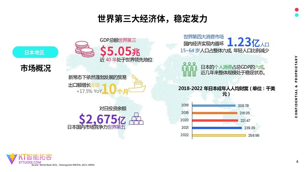 了解本地市场是海外业务拓展的基础。为了帮助出海广告主和合作伙伴深入了解目标市场,KT智能拓客 推出了《全球市场百宝书》系列内容。每期《百宝书》按照市场进行划分,全面涵盖当地的经济、文化、用户行为、行业动态以及营销趋势等,为全球扩展的品牌提供必需的信息,帮助其制定本地化策略,顺利开启海外市场之旅。